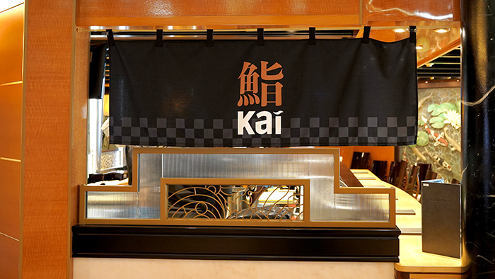 世界一周クルーズでは、訪れる寄港地で、その土地ならではの食事を楽しむことができます。寄港を楽しんで船に戻ってきたら「日本食が食べたい!」という方も。そんな時は、握り寿司や刺身などをご提供するすし処海-KAI-へ。今日もお寿司とともにお話を楽しむにぎやかな声が聞こえてきます。