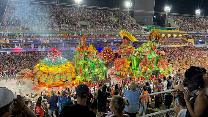 そして待ちに待った、リオのカーニバル鑑賞!豪華絢爛な山車とダンサーやミュージシャンによる華麗なパフォーマンスは、圧巻!登場するダイナミックな山車の数々に、観客席も大賑わいでした。