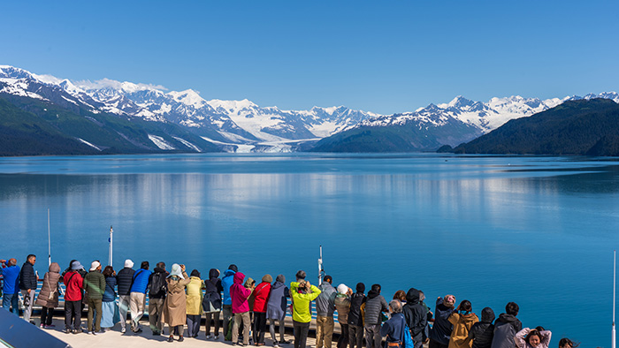再び広大な太平洋へと辿り着いた船は、北米大陸を北上。「世界でもっとも住みやすい都市」と謳われるカナダのバンクーバーに寄港し、都会的な街並みと自然に抱かれた素晴らしいひとときを過ごしました。その後は、お待ちかねのアラスカフィヨルドへ。地球が刻んだ悠久のときを感じる大氷河や、険しい山々と美しい海の競演など、“最後の秘境”アラスカの絶景をたっぷりと堪能しました。豊かな先住民文化が残るシトカやスワードへの寄港も、忘れられない思い出となりました。