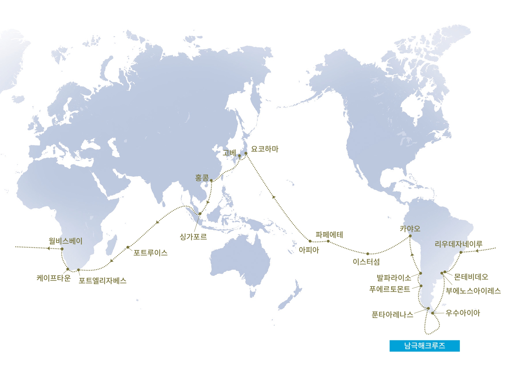 아프리카의 광활한 평원과 남아메리카의 장엄한 산맥, 반짝이는 남태평양의 바다를 지나, 맑고 투명한 공기 아래 끝없이 펼쳐지는 푸른색과 흰색의 세계, 남극에 이르기까지— 그곳에는 말로 다 표현할 수 없는 장대한 풍경이 펼쳐집니다.