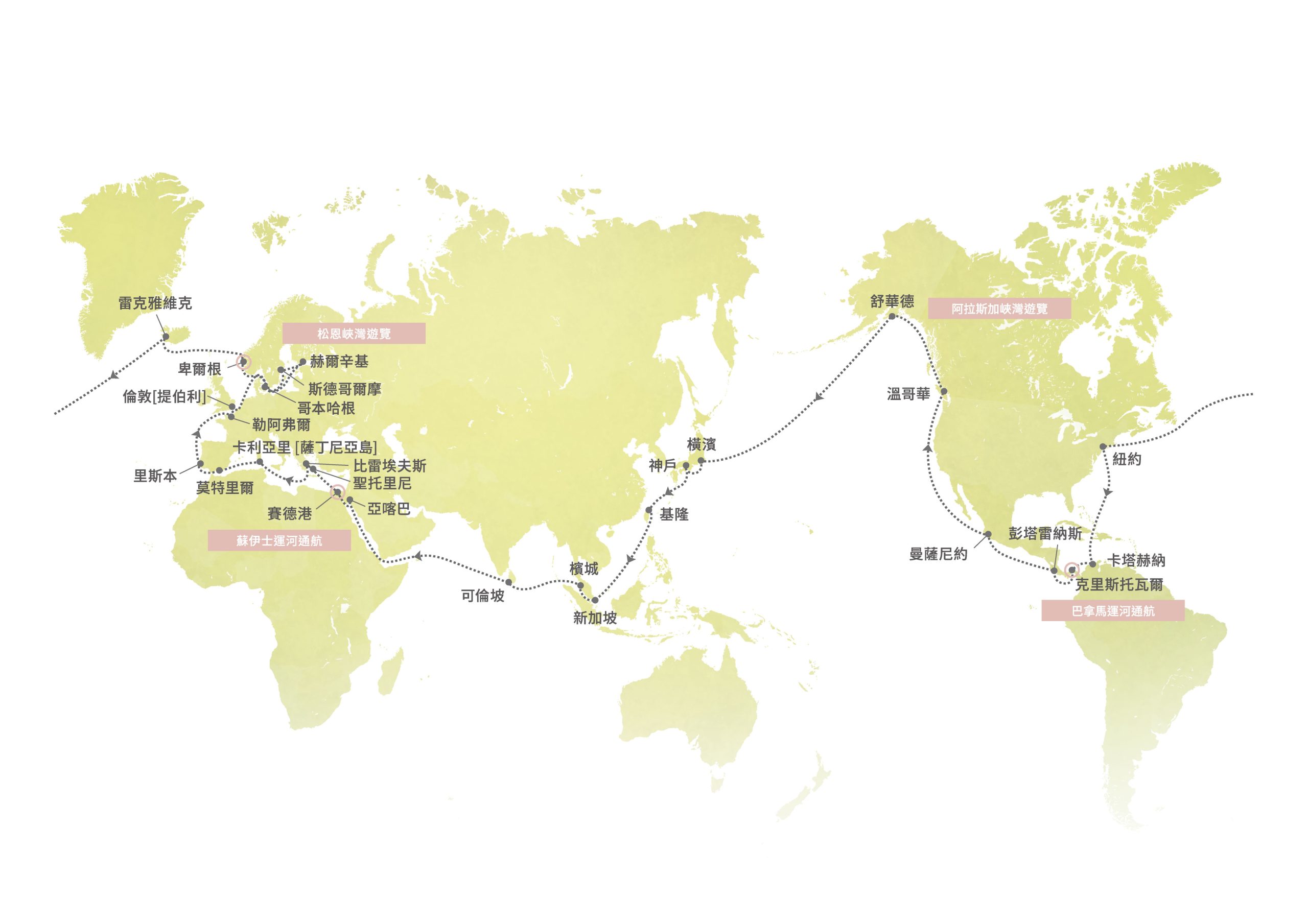 2027年春季的世界環遊郵輪之旅,將帶您造訪包括北歐在內的25個美麗港口。旅程亮點包括搭船巡遊挪威綠意盎然的松恩峽灣,以及阿拉斯加壯麗的冰河峽灣。這是只有郵輪旅行才能體驗到的絕美自然景致。