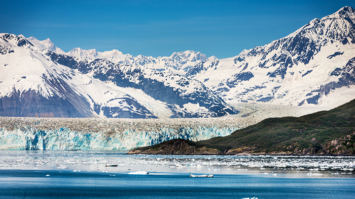 深く広大な森林地帯やかけがえのない野生動物の営み、そして、険しくも美しいフィヨルドの谷間を迫りくる大氷河——アラスカには、静謐な空気に包まれた大自然の絶景がどこまでも広がります。頂に雪を抱いた急峻な山々や豊かな緑に彩られた沿岸部、悠久の時を刻む巨大な氷河の造形美を間近に望むフィヨルド遊覧は、この地ならではの特別な体験です。