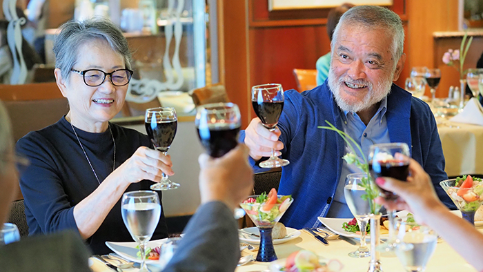 いろいろな寄港地で観光や街めぐりを楽しみましたが、港に戻ればいつだって自分たちの船が待っていてくれます。もちろん寄港地での時間は刺激的でわくわくしますが、やっぱり疲れも出ますし、そんなときに「早く船に帰ってゆっくりしたいな」と思えば、すぐに帰って来られる。何だか、本当の家に帰ってきたみたいでホッとするんですよね。船内は大きくてゆとりもあるので公共スペースも充実してますし、日本人総料理長がいて食事が美味しいのもうれしいです。まるで“我が家”にいるような、そんな気持ちになりますね。