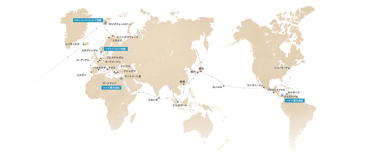地球誕生46億年、人類誕生20万年の進化とその時間の物語に出会いに─。古代遺跡が迎えるエジプトや、空中都市マチュピチュ訪問が人気のカヤオ、これぞ”世界一周”といった寄港地が目白押し。5夜連続のオーロラチャンスが待つアイスランドも見逃せません。この素晴らしい地球を舞台に「憧れの光景をこの目で見てみたい」そんな思いを叶える旅がいま、はじまります。