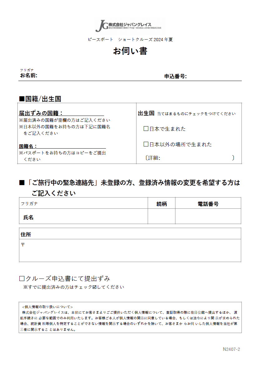 ピースボート ショートクルーズ 2024年夏にお申し込みのお客様