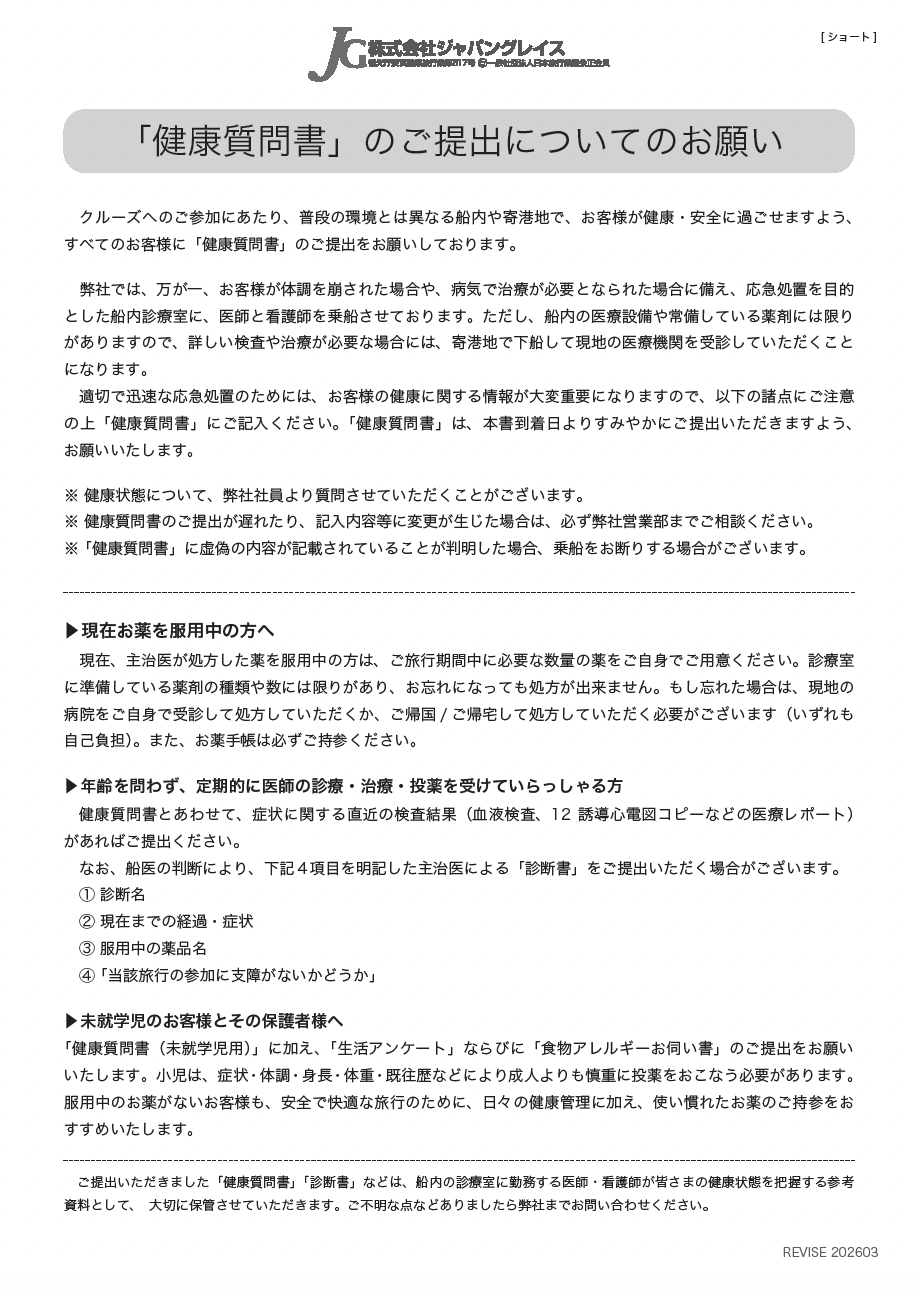 健康質問書提出のお願い