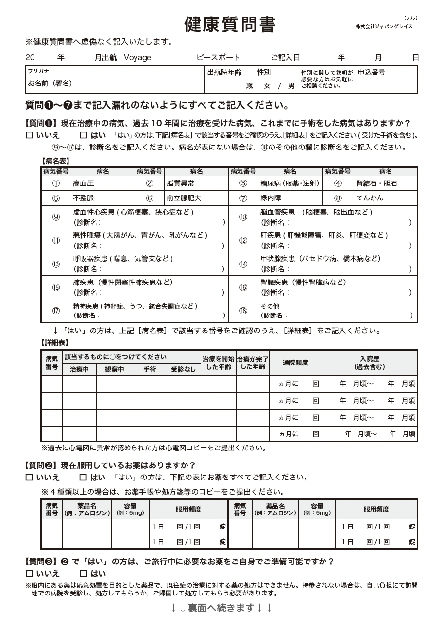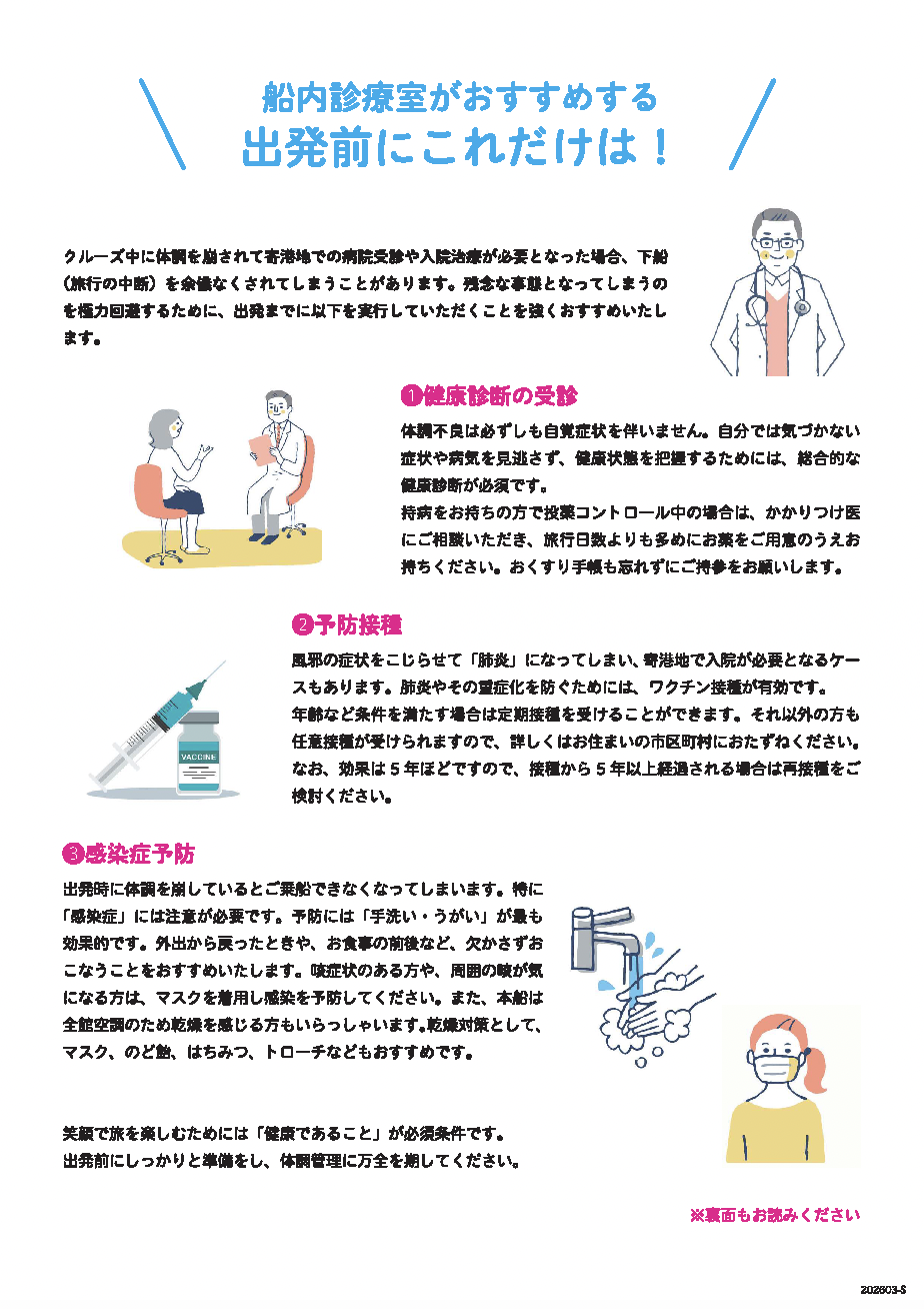 クルーズ出発にあたってご提出が必要な書類と渡航手続きのご案内です。
