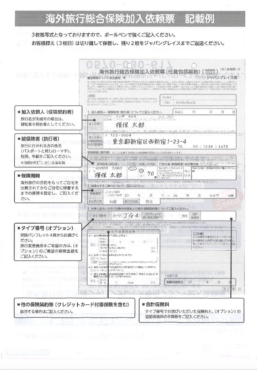 海外旅行保険加入依頼票