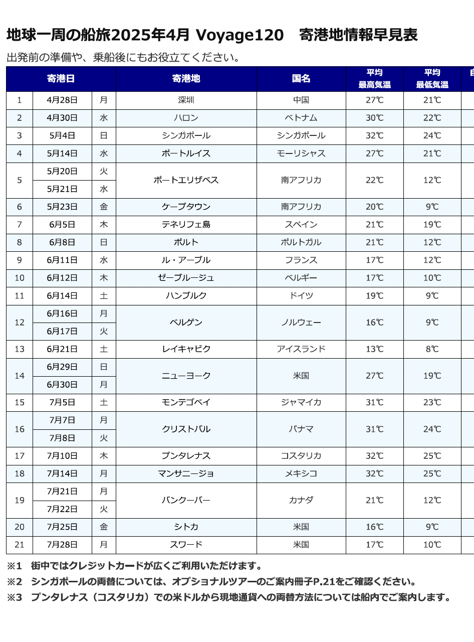 地球一周の船旅 Voyage120にお申し込みのお客様
