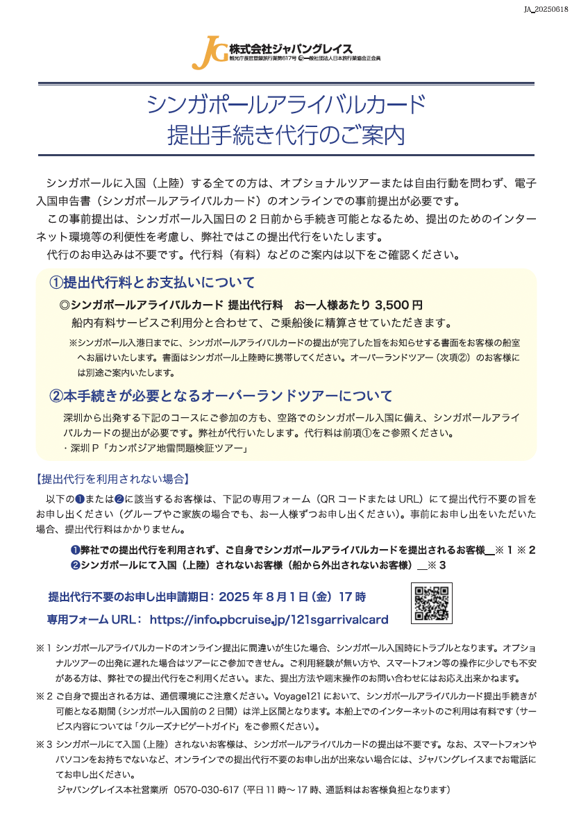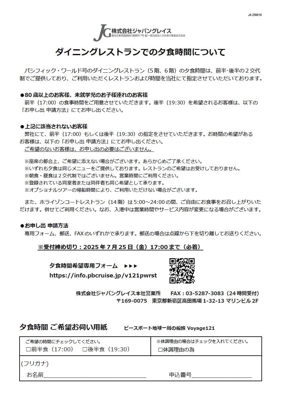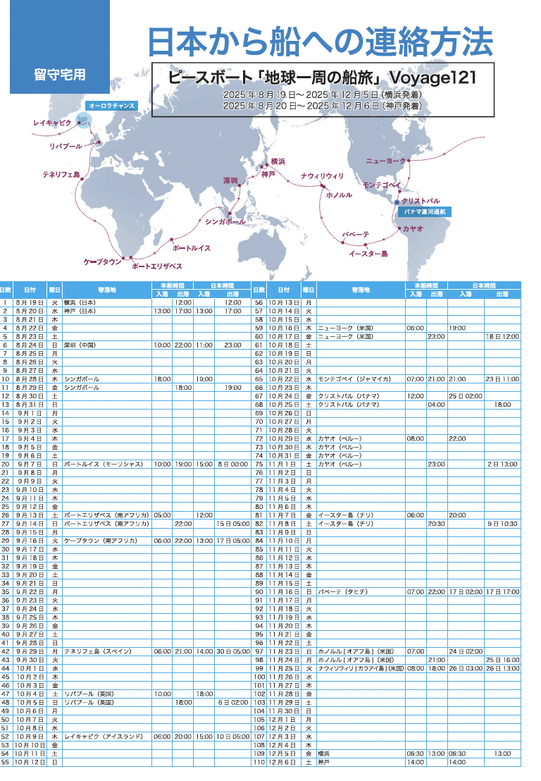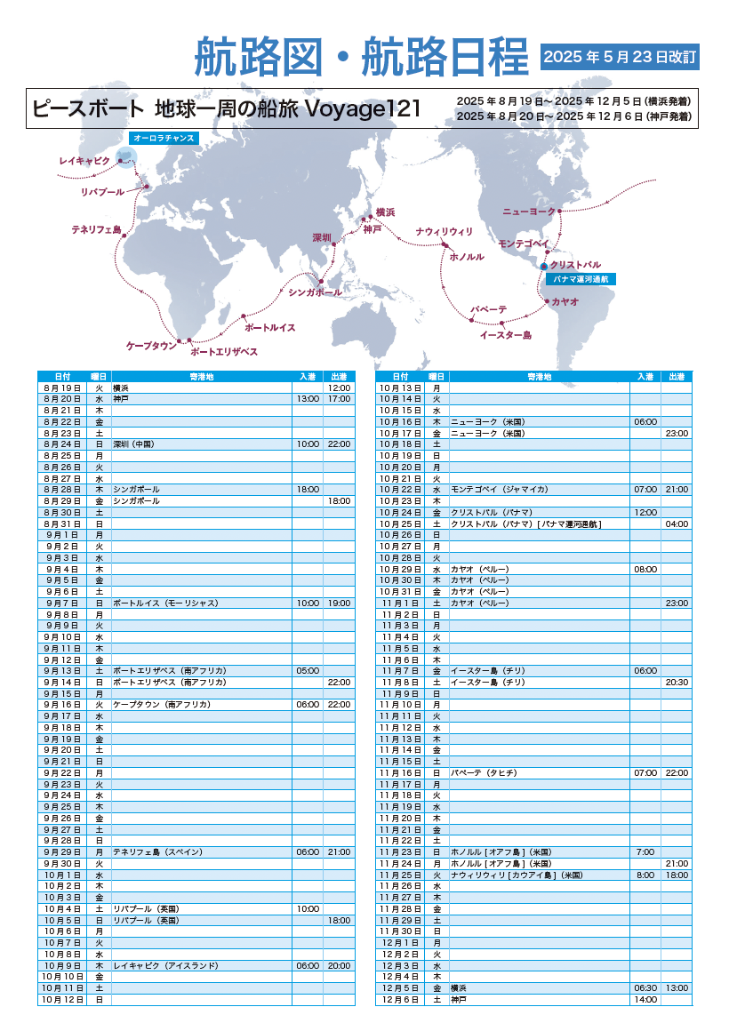 10:00更新 Voyage121 パシフィック・ワールド号 帰港時間遅延のご案内