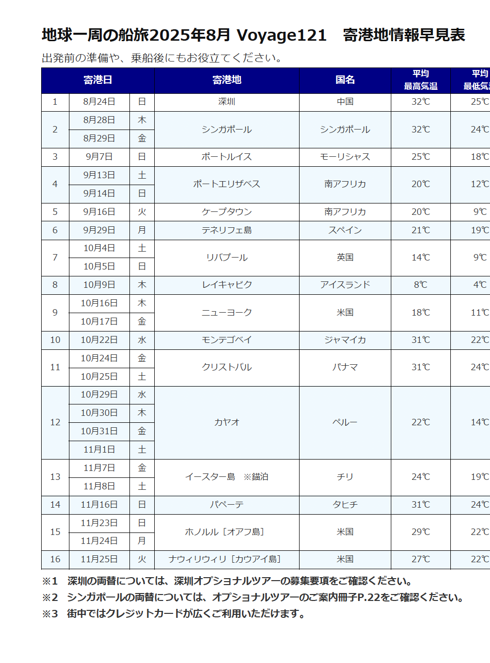地球一周の船旅 Voyage121にお申し込みのお客様