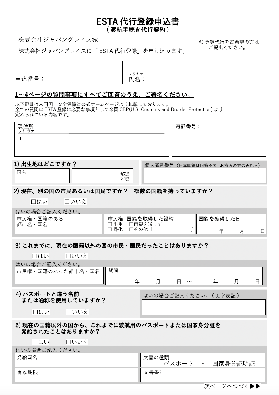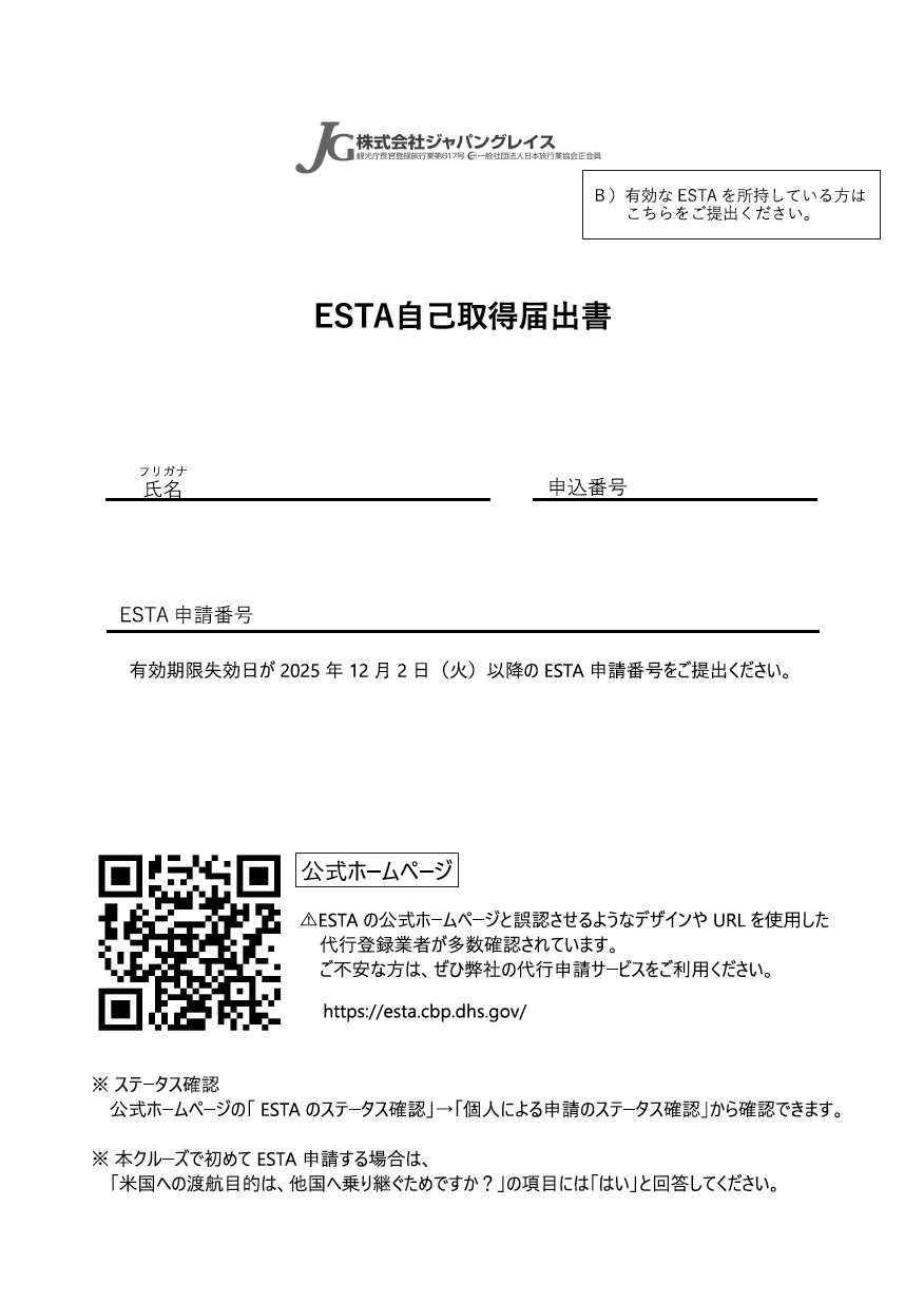 ESTA代行登録申込書