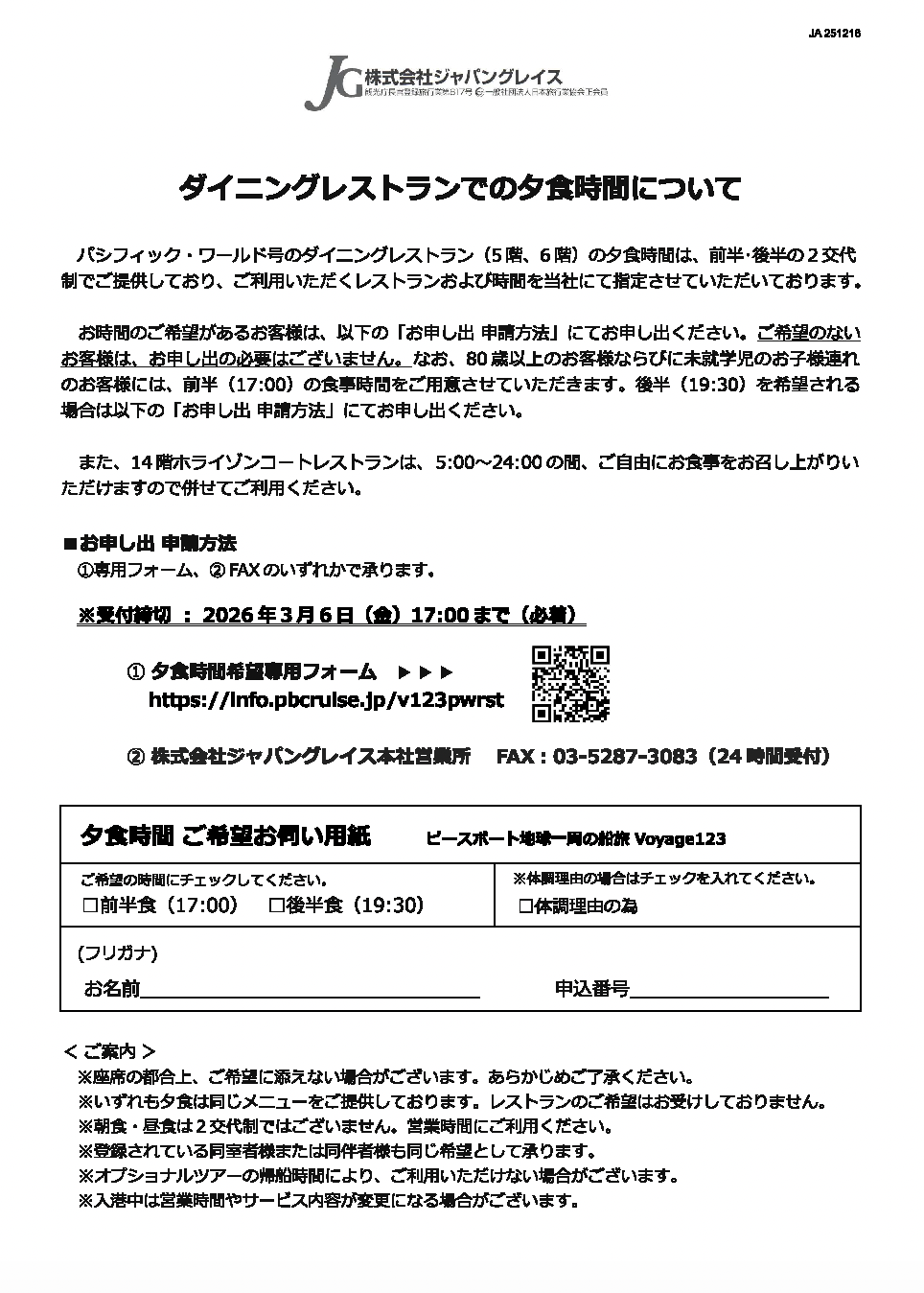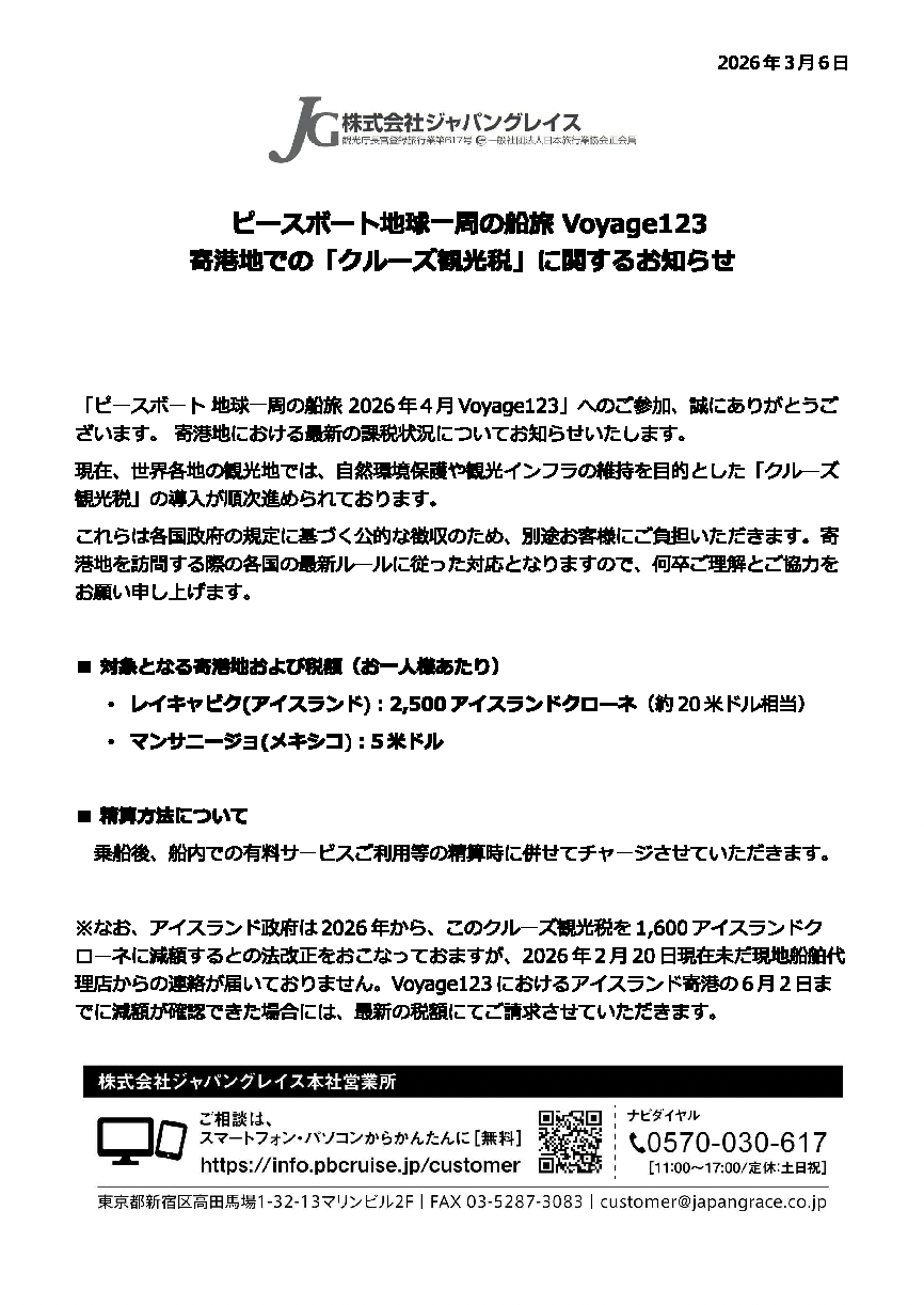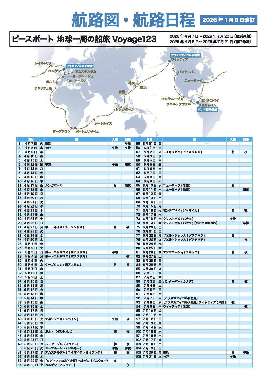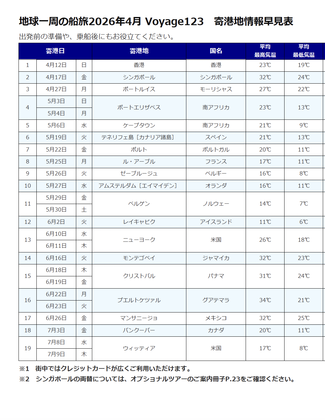 地球一周の船旅 Voyage123にお申し込みのお客様