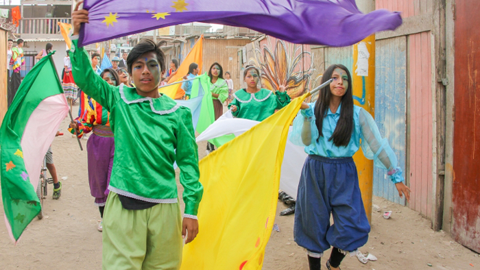 ペルー内戦を逃れた人びとが、砂漠の地に集まり生まれた「ビジャ・エルサルバドル」というスラム。元々は人びとが”不法”に集まった場所でしたが、住人同士が互いに意見を出し合い、優れた都市計画から”街”が築きあげられ、「奇跡の街」と呼ばれるまでに。ノーベル平和賞にもノミネートされるなど、世界の注目を集めています。こうした「ビジャ・エルサルバドル」発展に大きく寄与した現地NGO「アレーナ・イ・エステラス」との交流を通じて、貧困問題や社会参加について考えるプログラムも実施しています。