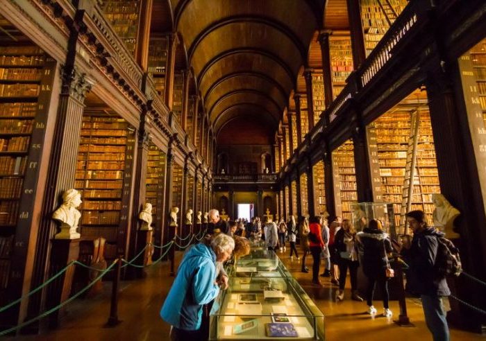 伝統的な美しい街並みのダブリン。中でも、旧市街にあるアイルランドに現存する最古の国立大学「トリニティ・カレッジ」はエリザベス1世が設立したという伝統ある学校です。ここの旧図書館は、「世界でも最大の研究書物を収蔵する図書館」で、20万点もの蔵書が収められており、華麗で荘厳な雰囲気が味わえます。また、アイルランドの国宝で「世界で最も美しい本」とも呼ばれる「ケルズの書」も収められていて、アイルランドの歴史や伝統、文化を垣間見ることができます。