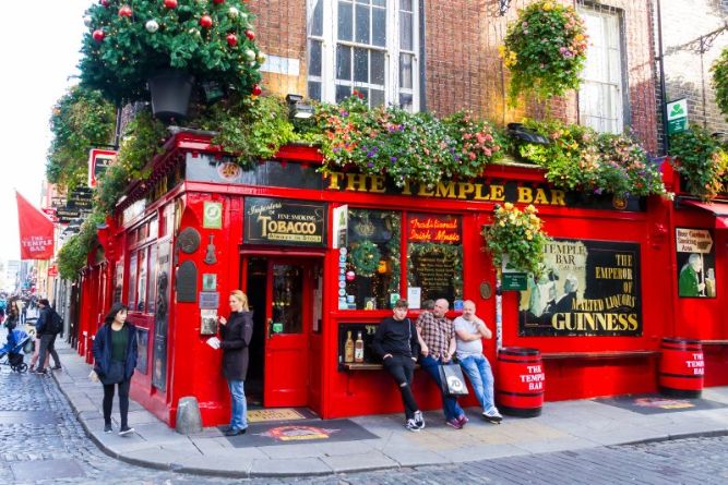 パブは、アイルランド文化のひとつといっても大げさではないほど、地元の人びとの生活に欠かせない場所。アルコールを楽しむだけではなく、ティータイムとして、また簡単に食事をする場所として、誰もが気軽に利用しています。ダブリンの中心部にあるテンプル・バー地区は、リフィ川に沿って中世の街並みが保存され、入り組んだ狭い道に沿って数えきれないほどのパブやレストランが軒を連ねます。ここにあるのが、赤と黒のデザインが印象的な「テンプルバー」という老舗のパブ。ギネスビール発祥の地、ダブリンで本場の味を楽しむのも一興です。