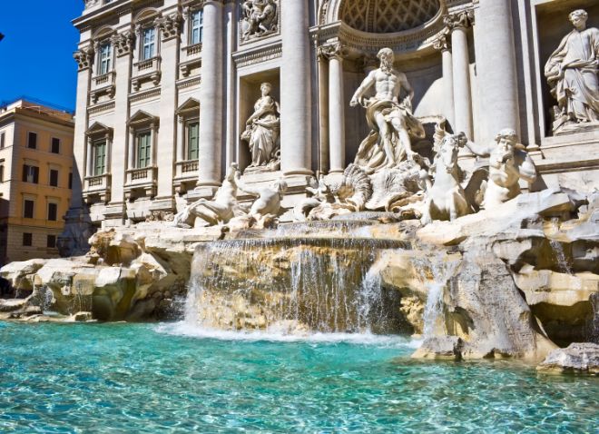 チビタベッキアから電車で1時間ほど走ると、「永遠の都」ローマに到着です。世界遺産「ローマ歴史地区」には偉大な帝国の遺跡がひしめいています。まずは、円形闘技場「コロッセオ」へ。4階建ての客席からは、かつての猛獣の檻や大掛かりな舞台装置などの地下施設も見ることができます。映画「ローマの休日」の舞台にもなったスペイン広場やトレヴィの泉も必ず訪れたい場所。スペイン広場では、ぜひ大階段へ。現在は、飲食や座ることはできませんが、階段から眺める景色は感動的です。トレヴィの泉では、願いがかなうようにコインを後ろ向きに投げ入れることをお忘れなく!