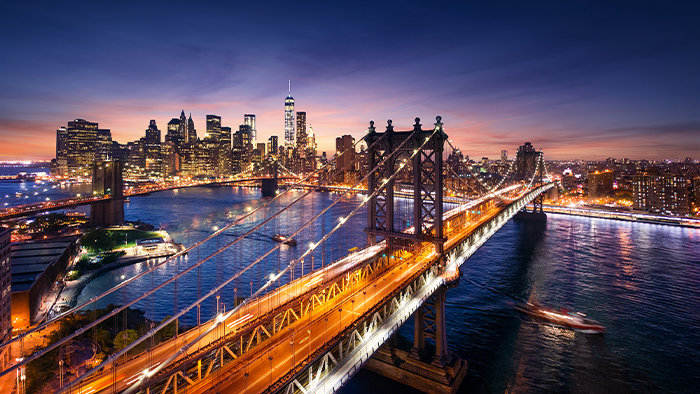 定番の自由の女神像をはじめ世界的な美術館や、緑豊かな公園、マンハッタンの摩天楼など、見どころはつきません。まばゆい夜景も楽しみのひとつです。