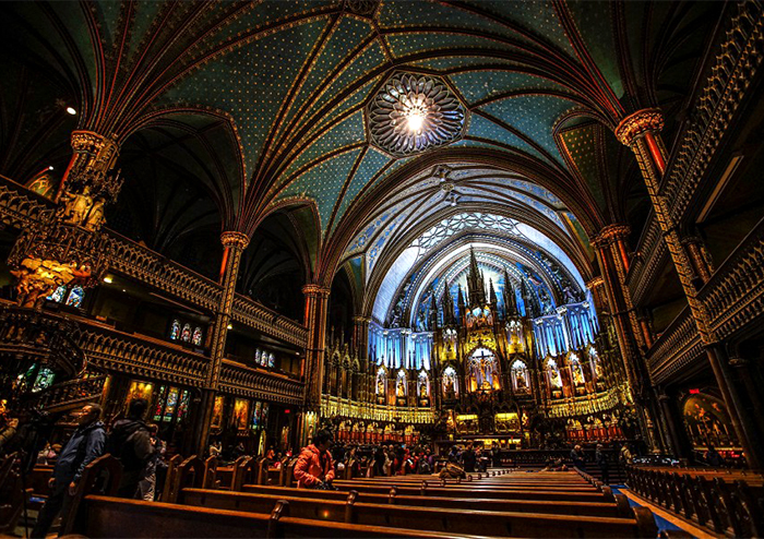 モントリオール映画祭や国際ジャズフェスティバル、全世界を魅了する、シルク・ドゥ・ソレイユもモントリオールが本拠地。モントリオールの美しさを象徴する建造物が、「ノートルダム大聖堂」です。コバルトブルーのライトに照らされた黄金の祭壇、街の歴史が描かれたステンドグラスから差し込む光が幻想的な空間を演出します。その美しさには、しばし時が経つのも忘れて見入ってしまうほど。旧市街を飛び出せば、さまざまな文化背景を持つアーティストたちが描くミューラルアート(壁画)が目に留まります。