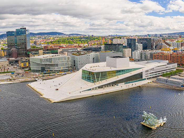首都としては比較的小さなオスロの街では、隣り合う自然と、街に点在するアートな空間が心地よい雰囲気を生み出しています。ヴィーゲラン彫刻公園は、彫刻家グスタフ・ヴィーゲランが造ったユニークな彫刻が園内を彩る、観光客にも人気のスポット。画家のムンクが生涯を過ごしたオスロには、代表作『叫び』など多数の作品が展示されたムンク美術館もあります。フィヨルドに浮かぶ氷山をイメージして建てられたオペラハウスからは、自然に根差した北欧デザインと現代建築が融合する、オスロらしさが感じられます。