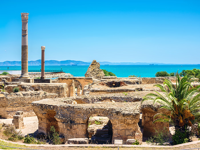 チュニス郊外に広がるカルタゴは、海洋民族であったフェニキア人が紀元前9世紀~8世紀頃に建設し、古代ローマ帝国によって滅ぼされたという背景を持つ都市遺跡です。古代ローマはフェニキア人の築いた建物をことごとく破壊し、ローマの都市を再建します。そしてカルタゴは、紀元2世紀にはローマ帝国第三の都市となりました。共同浴場や円形闘技場、ローマ劇場など古代ローマ人の生活を現代に伝える史跡巡りは、地中海の覇権を争い敗れ去ったフェニキアの民に思いを馳せるひとときです。