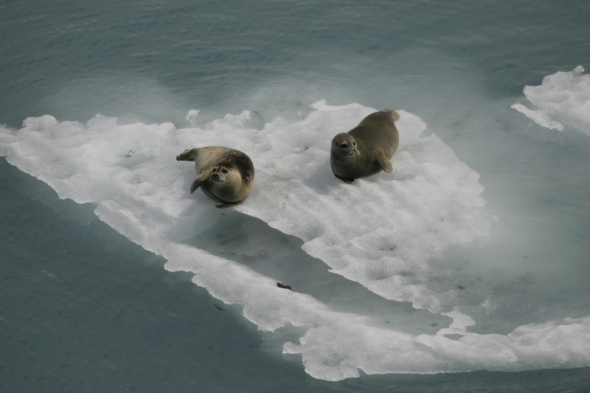 夏のインサイドパッセージでは、大型クルーズ船からでも大型の海洋生物が観察できる可能性が大いにあります。この時期アラスカでもっとも遭遇する確率の高いクジラは、ザトウクジラ。もしかすると、大きなクジラが海面でジャンプする「ブリーチング」の様子を見られるかもしれません。かつて私もクジラの群れがブリーチングする場面に遭遇したことがあるのですが、楽しそうに何十回もジャンプを繰り返す姿は、本当に感動的でした。ただ、夢中で撮影しているうちにカメラのバッテリーが切れてしまって(笑)事前にきちんと充電し、予備バッテリーも備えたうえでクルーズに臨まれることをお勧めします。