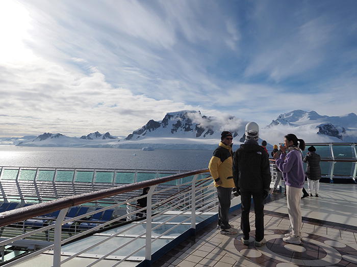 南極には国家としての“大使”はいません。しかし、その美しさや脆弱性を伝えていく「大使」が必要です。IAATO(国際南極旅行業協会)では、南極で得た知見や思いを、これからの日常で広げていくために、体験を単なる記憶にとどめるのではなく、社会全体へと波及させる機会として「南極アンバサダー(大使)制度」を設けています。心を打たれた南極の景色や繊細で力強い生態系を守るために、「自分に何ができるのか」を一人ひとりが真剣に考え、具体的な行動を起こすことを目的としています。2025年1月のピースボートクルーズでの南極遊覧でも実施され、自分自身ができることを今後も続けていくと宣言した乗船者には、IAATO公式のアンバサダー証明書が授与されました。