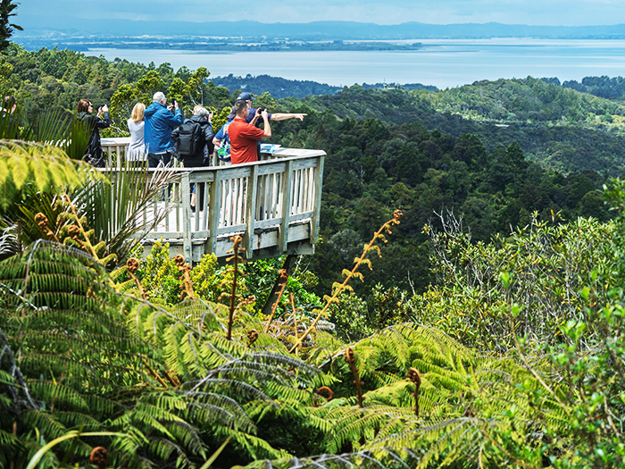 市内から少し郊外に出るだけで、ため息が出るようなニュージーランドの大自然が迎えてくれます。ワイタケレ自然公園は、手つかずの森林と豊かな生態系を守る広大な保護区。アラタキ・ビジターセンターでは、マオリ文化や自然保護に関する展示と、壮大な眺望を楽しめます。