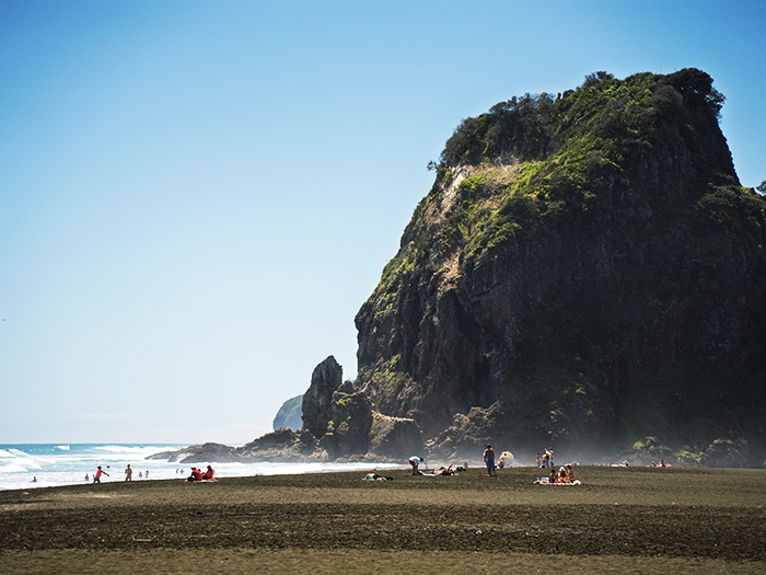 黒砂の海岸と力強い波が印象的なピハビーチは、サーファーに人気のスポット。ライオンロックとよばれる岩山がシンボルで、迫力ある海岸線の風景とともに、自然の厳しさと美しさの両方を感じられます。街の喧騒を離れて壮大な海に向き合える場所です。