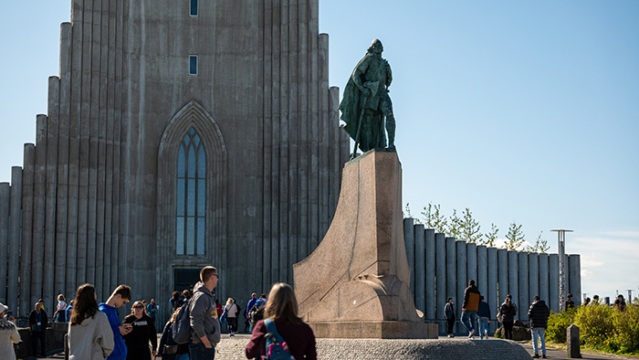 街のどこにいても目に入るのが、シンボルであるハットルグリムス教会。特徴的な外観は、噴火した火山から流れ出たマグマをイメージしたもので、近未来的な印象も。内部はシンプルで洗練された造りになっており、パイプ数5,275本を誇る巨大なパイプオルガンが設置されています。高さ74mの教会の塔からは、カラフルで温かみを感じるレイキャビクの街並みを眺めることができます。