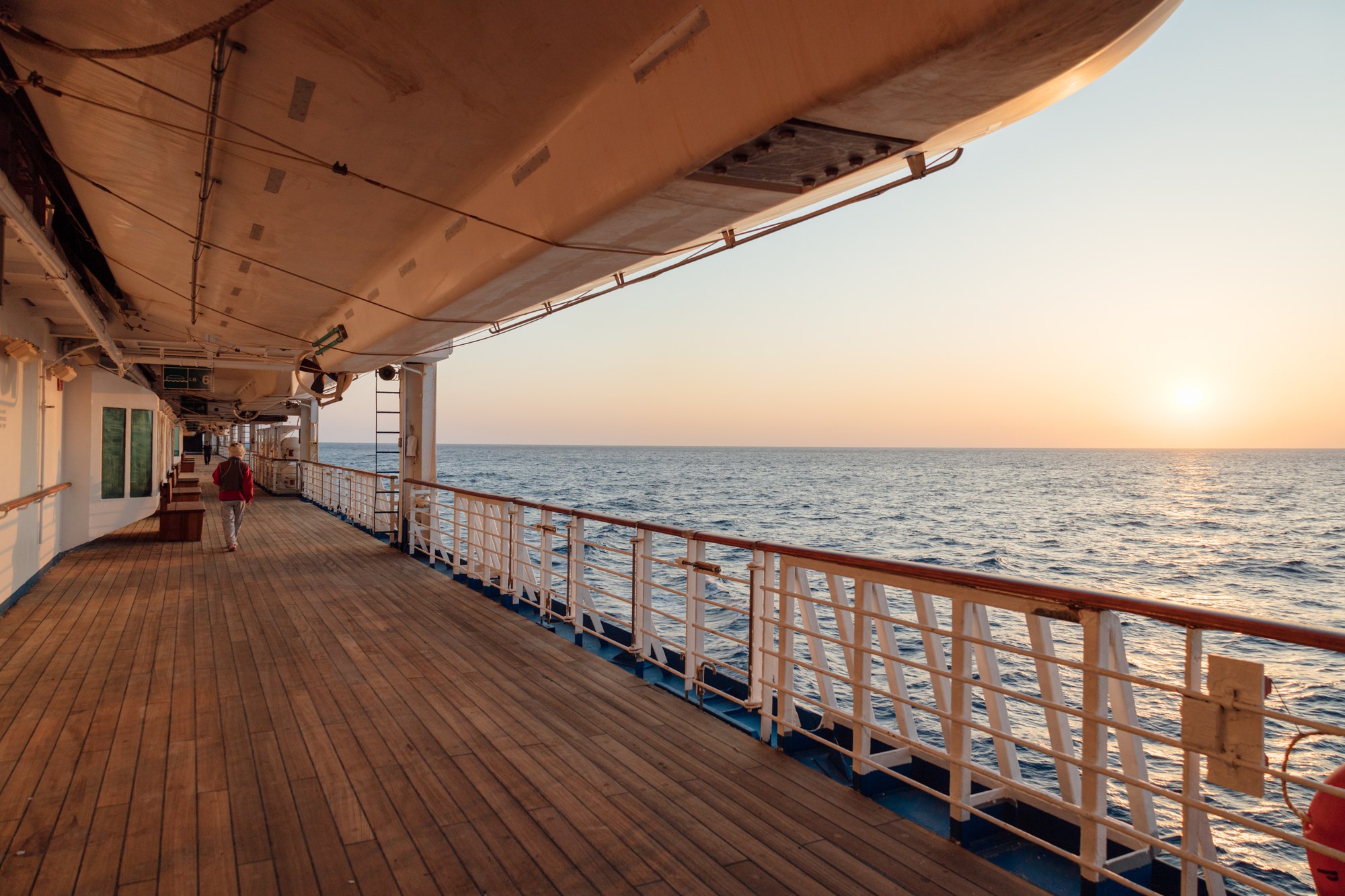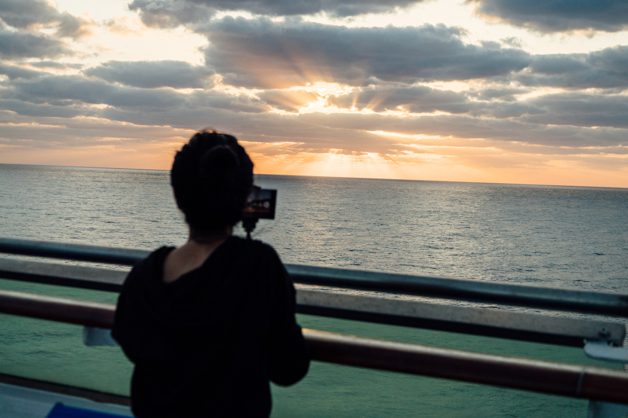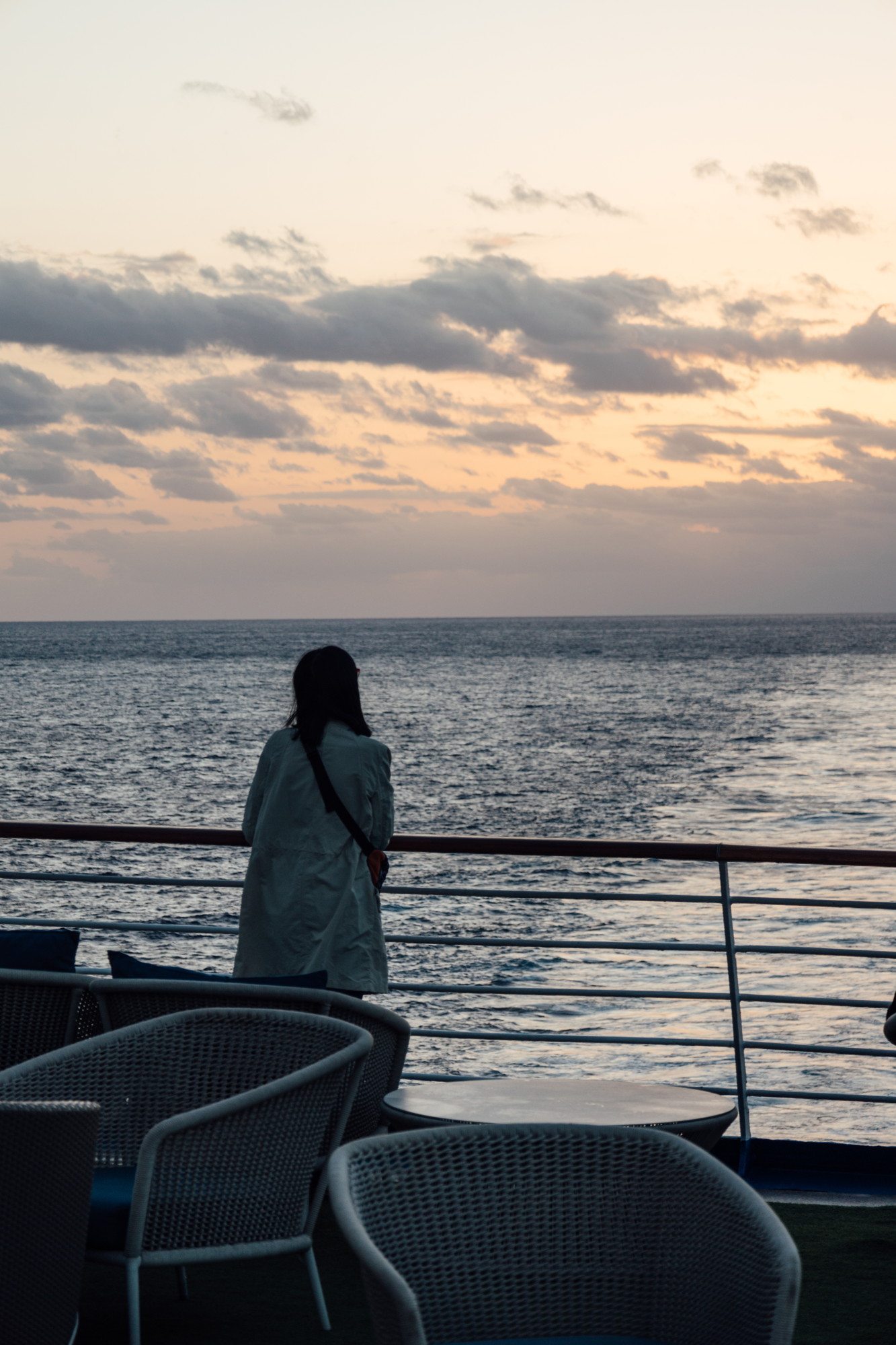 洋上で過ごす1日。船内で親しくなった友人たちとおしゃべりをしたり、船旅での出来事を日記につけたり、新しい趣味にチャレンジしたりと、その過ごし方は乗船者の数だけ存在します。その中でもっとも贅沢な時間の過ごし方は、ただただゆっくりと海や空を眺めることかも知れません。360度を大海原に囲まれた船から景色を眺めていると、得も言われぬ解放感があり、ゆったりとした気持ちになります。船から世界各地の海と空を眺めるひとときは、地球一周の船旅だからこその特別な時間です。