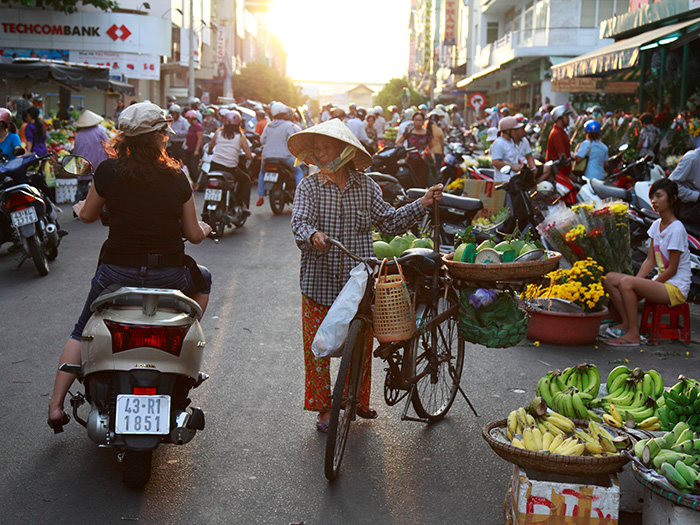 風光明媚な景観が出迎える出入港も美しいものですが、その土地に暮らす人びとのお出迎えやお見送りは、時にそれ以上の印象を与えてくれます。 ベトナムのダナンも、そんな寄港地のひとつ。現地の若者たちとの交友を深める交流プログラムは、ダナン寄港時のピースボートクルーズ恒例で人気のプログラムです。船を降りると、さっそく交流相手となる皆さんが迎えてくれます。彼らの案内で街を散策したり、互いに出し物を披露しあったり、食事を共にしたりと、楽しいひとときを過ごします。