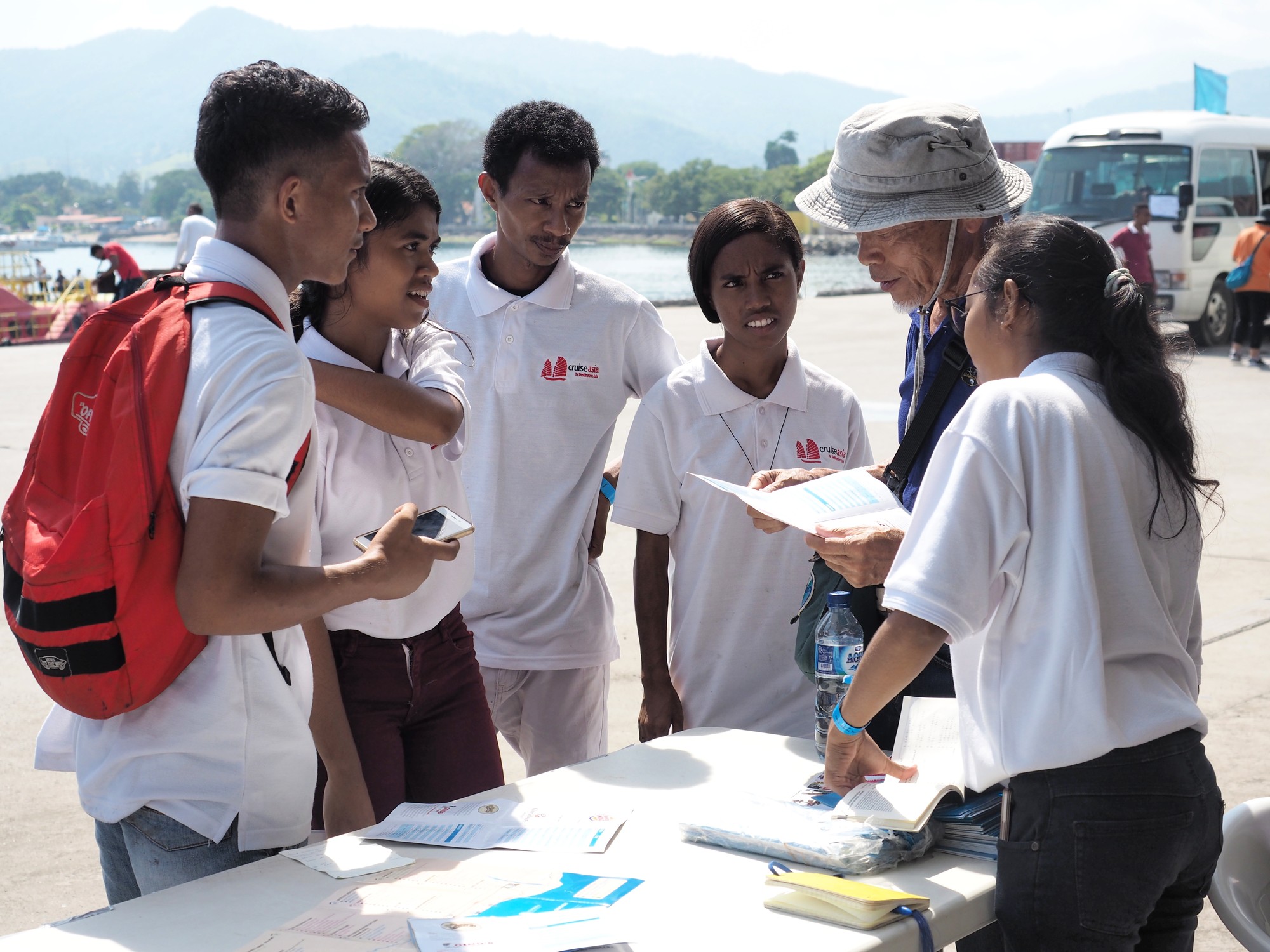 ピースボートクルーズでは、東ティモールが独立する2年前の2000年に初めて寄港。文房具や衣類、ミシン、スポーツ用品などさまざまな支援物資を届けたり、東ティモールの若者がクルーズの一部区間を共にしたりと、さまざまな交流を行いました。