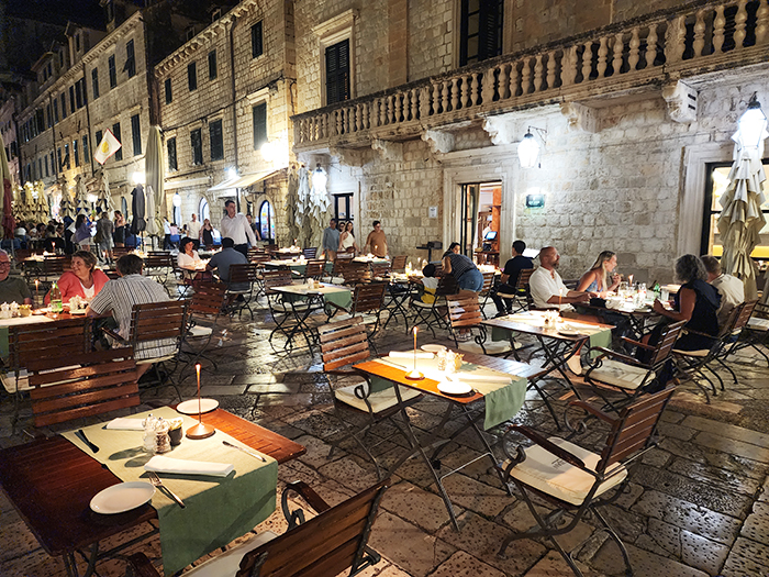 そして、旧市街のもうひとつの楽しみは路地裏に。石の階段が続く細い道をあてもなく歩けば、素敵なお店を発見できたり、この街に暮らす人々の生活を垣間見ることができます。旧市街に張り巡らされた細い路地は、どこを切り取っても素敵な雰囲気に満ちています。長い階段を登ったり、降りたりしながら、旧市街を探検します。 また、ドブロブニクの旧市街は、夜の街歩きも魅力。クラッシックな外灯の光に照らされて大理石の道が艶やかに輝き、日中とはまた異なる魅力的な表情を見せてくれます。