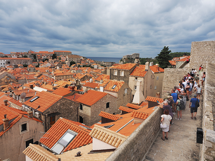 眼下にはさきほどまで歩いていた旧市街、その先には真っ青な水を湛えるアドリア海が広がっています。ドブロブニクを象徴するこの景色は、星の数ほどある絶景の中でもトップクラスの美しさといえるものでしょう。この街が「アドリア海の真珠」と呼ばれることにも納得の景色です。 しかしながら今からほんの20数年前、紛争状態にあったこの街には砲撃によって大部分が破壊された過去があります。オレンジの屋根瓦をよく見てみると、くすんだものと鮮やかなものがあります。後者が復興の際に新しくされたものです。そういった背景を知った上で訪れると、より平和の尊さを感じます。