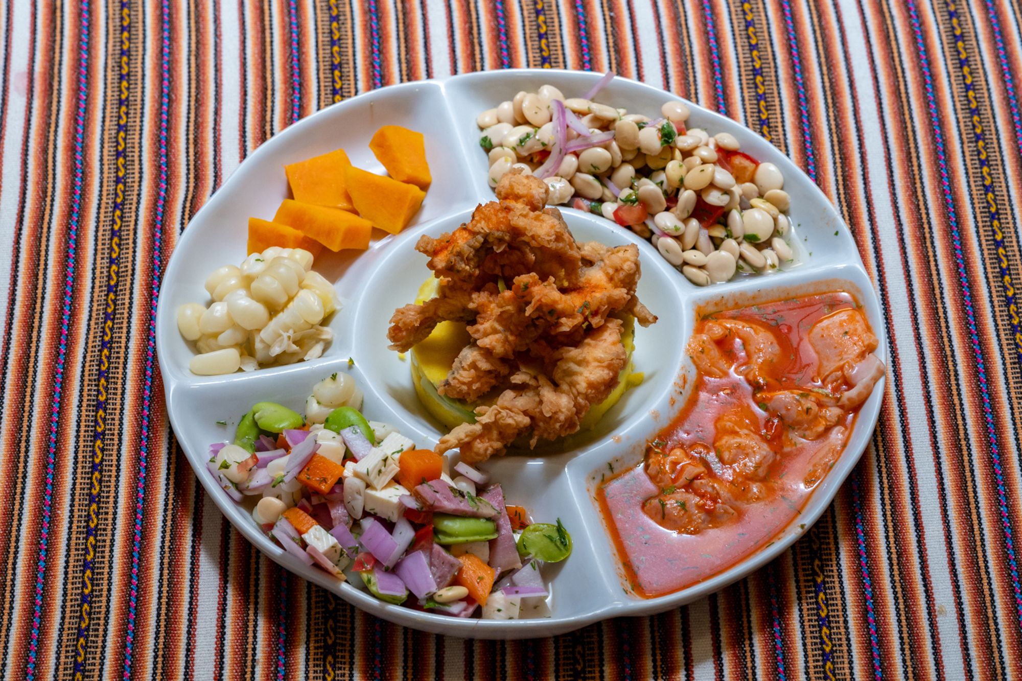 市場の奥にある食堂エリアでは、地元の人びとで賑わい、買い物帰りにテーブルを囲んでいます。ローカル感の溢れるこの場所では、ロンダ・アンディナと呼ばれる、アンデス地方に由来する伝統的な料理を集めたスタイルを楽しめます。また、好奇心旺盛な方は、ペルー山岳地方でよく食べられているネズミの一種「クイ」に挑戦してみてもいいかもしれません。