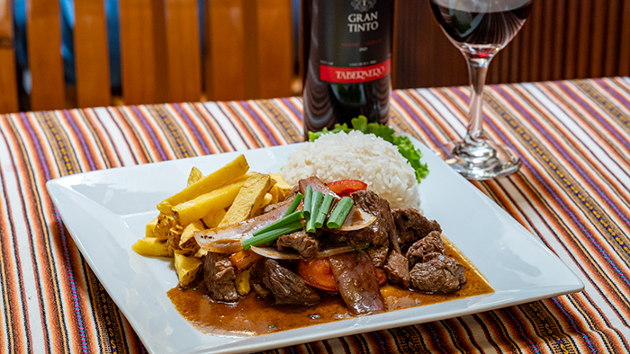 精肉コーナーでは、牛・豚・鶏のさまざまな部位が大きな塊のまま並べられ、地元の人が慣れた様子で買い求めていきます。肉はペルーの食卓に欠かせない存在で、中でも「ロモ・サルタード」はペルーの伝統的な料理のひとつ。牛肉と野菜の炒めものは米と共に提供され、日本人の舌にもよくあいます。