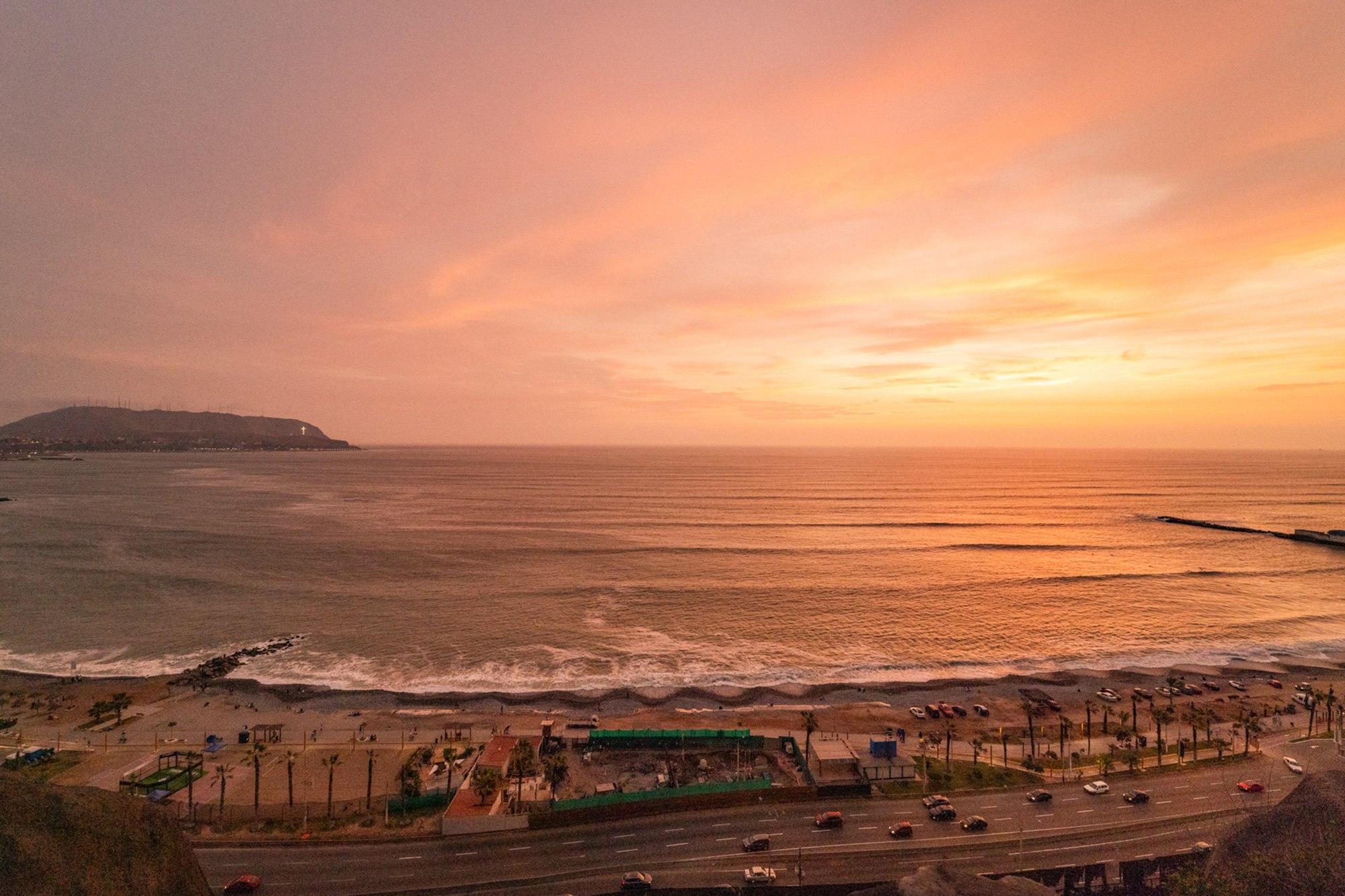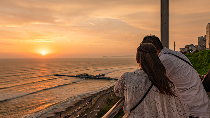 ミラフローレス地区の海沿いには、海岸線を見渡せる遊歩道が続いています。夕暮れ時になると、カップルや家族連れ、ひとりで夕日を見つめる人など、さまざまな人びとがこの場所に集まってきます。大きくなる夕日を見ながら、地元の人の「日常」の中に入り、その地を五感で感じることができます。
