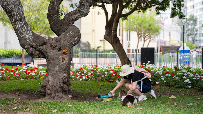 街の中心にあるケネディ公園は、リマの人びとの憩いの場。ベンチでくつろぐ人の足元には、自由気ままな猫たちが寄り添っていて、思わず笑みがこぼれます。どうやら野良猫たちがこの場所を気に入り、いつの間にか「ネコ公園」として有名になったのだそう。観光客も地元の人も、みんなで静かに見守る優しい空間でした。