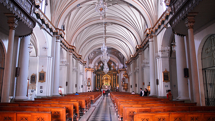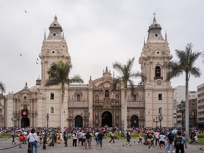 広場の一角にあるリマ大聖堂は、荘厳な外観と静けさに包まれた内部が印象的な建物です。中に入ると、ひんやりとした空気の中に礼拝に訪れる人の姿があり、信仰の深さを感じさせてくれます。壁や柱の装飾は繊細で、長い時間をかけて受け継がれてきた文化の重みを肌で感じることができます。