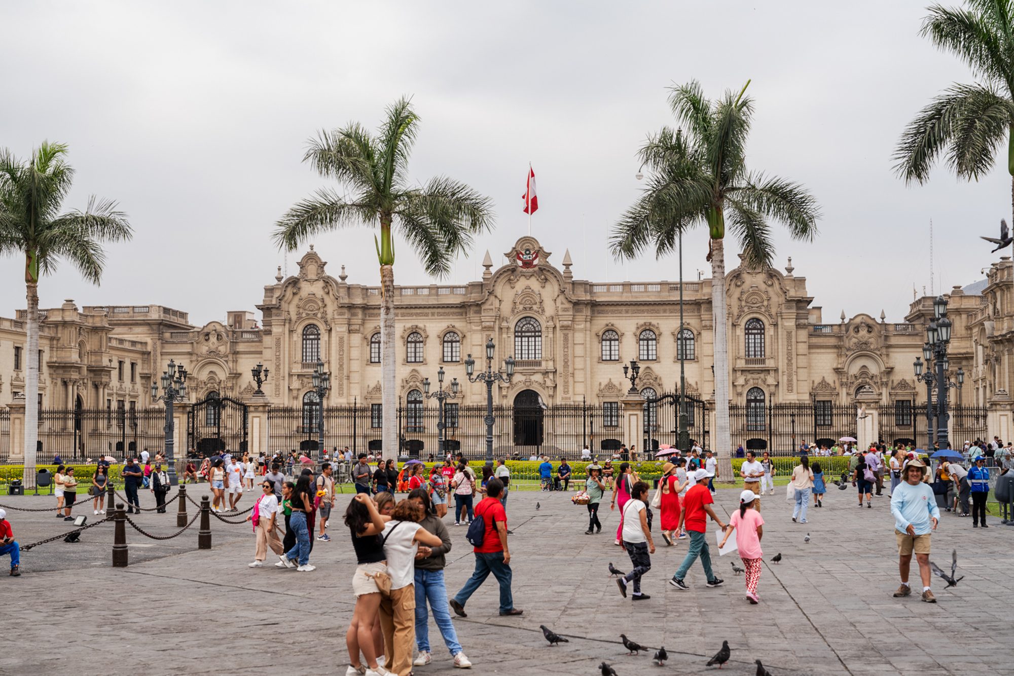 広場の正面に立つ大統領官邸は、ペルーの政治の中枢。建物の上に掲げられた大きな国旗が風にはためく様子を眺めていると、国としての誇りや自立心のようなものが静かに伝わってきます。伝統的な演出を見るのもいいですが、儀式や交代式のない静かな時間に訪れると、より街の雰囲気が感じられるかもしれません。