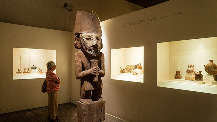 ゆるやかな坂をのぼった先に佇むラルコ博物館。外観はこぢんまりとしていますが、内部にはペルー各地の古代土器や美術品がずらりと並び、その美しさに驚かされます。プレ・インカ時代からインカ文明に至るまでの貴重な遺物が展示され、精巧な装飾が施された陶器や仮面からは、当時の人びとの生活や信仰を垣間見ることができるでしょう。