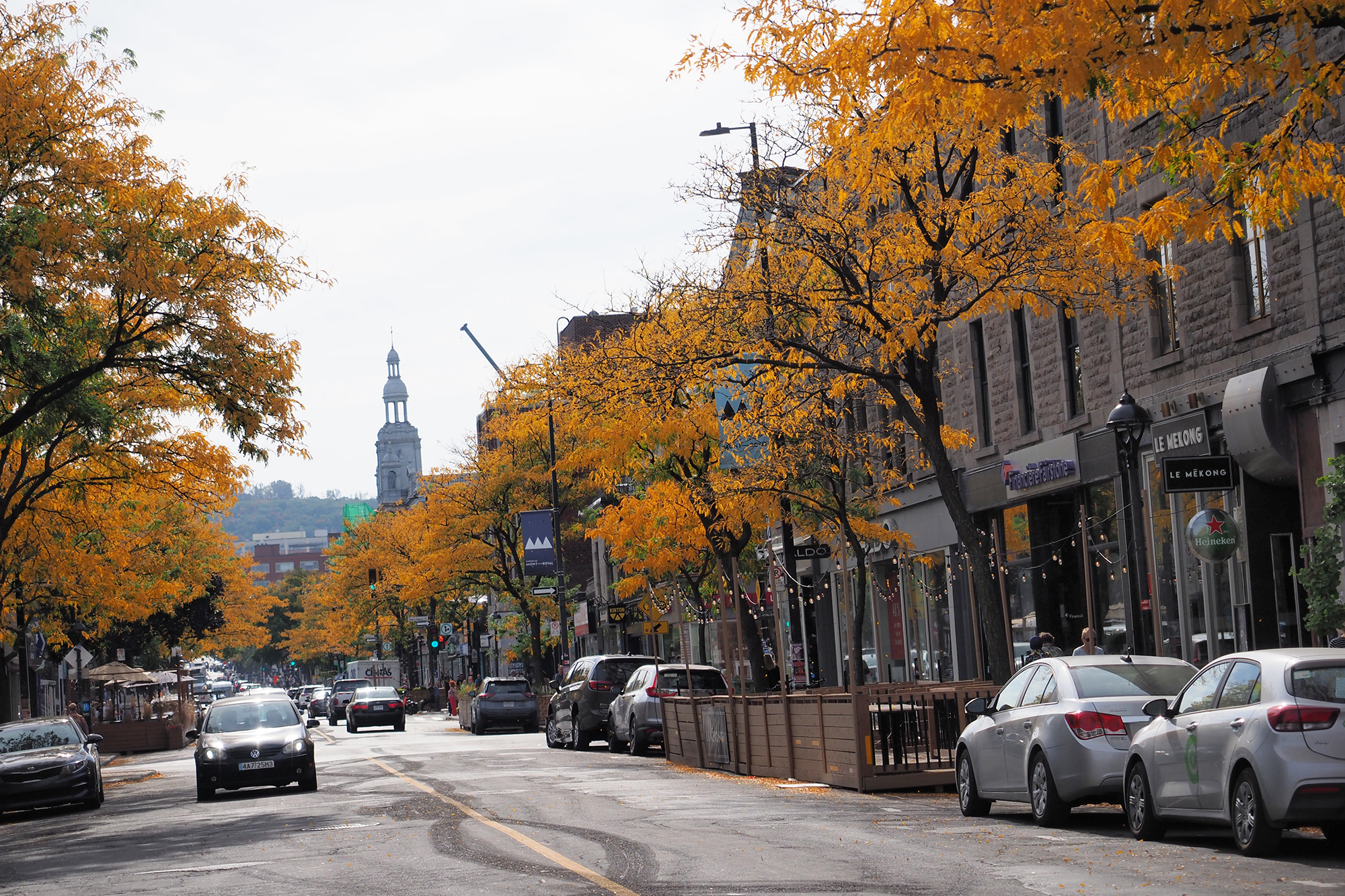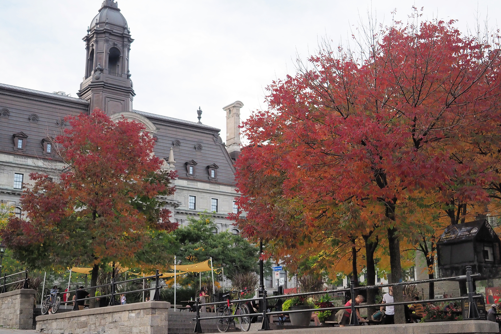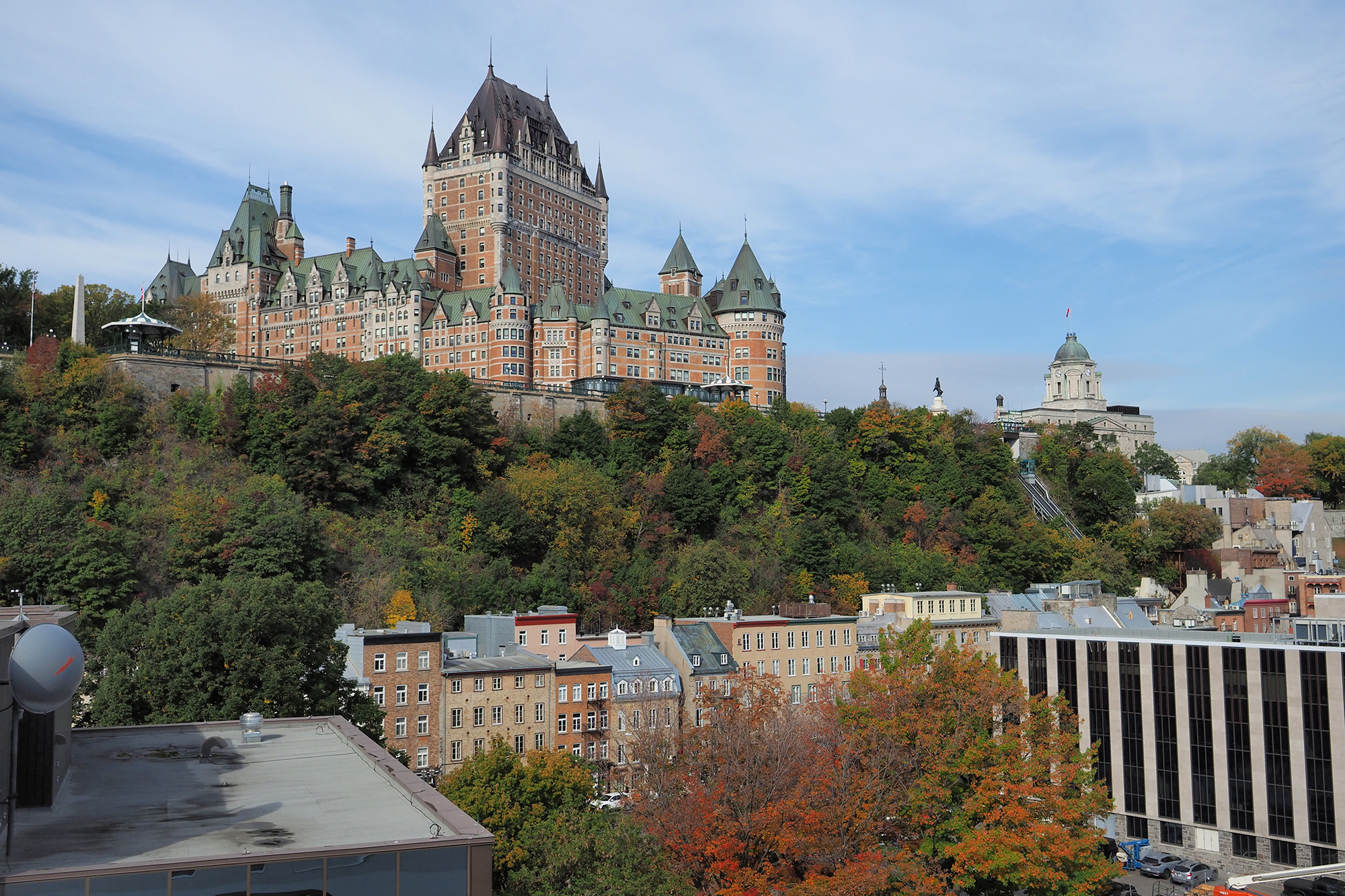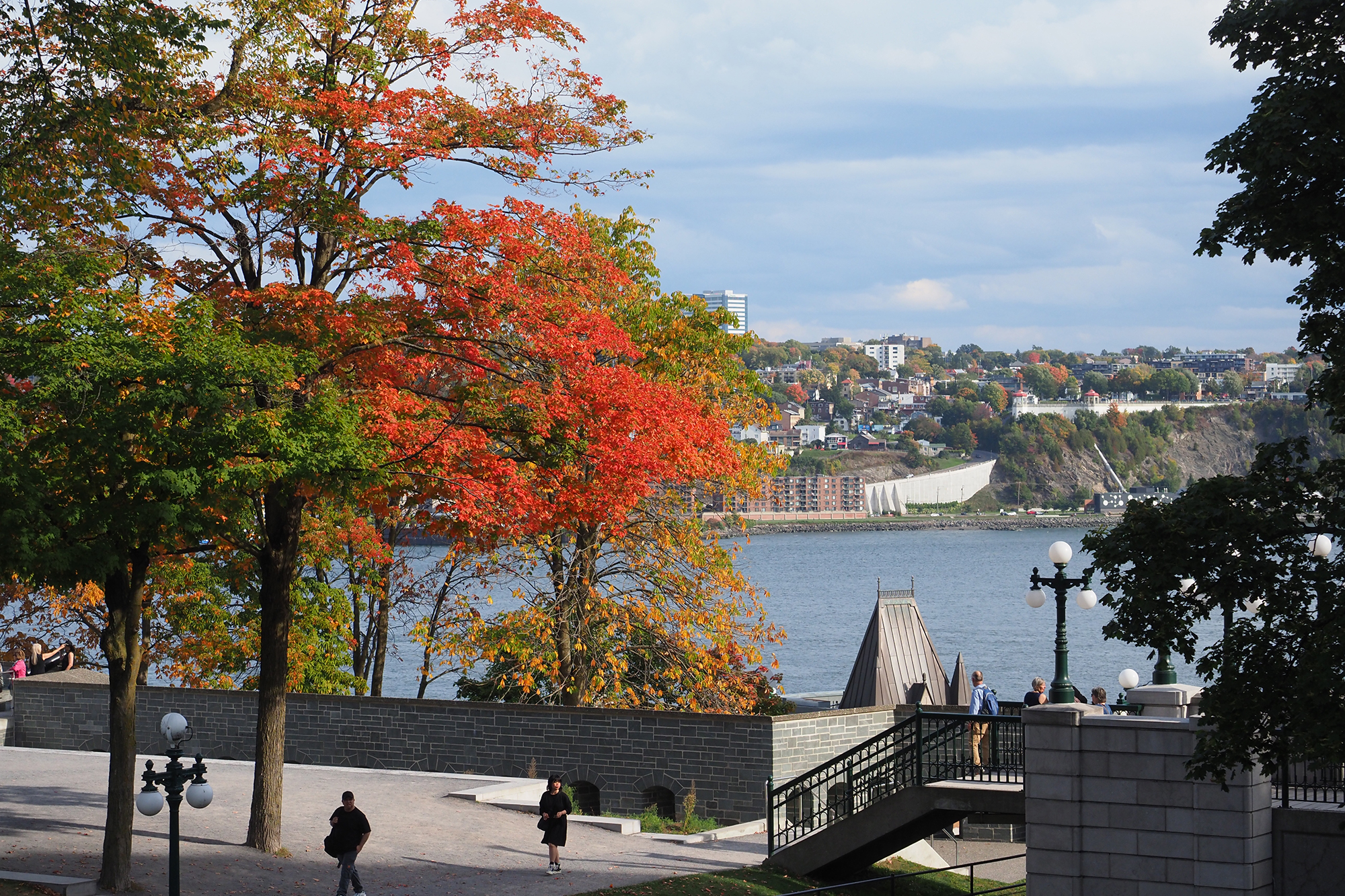 ケベック・シティの旧市街は、坂の上に築かれたアッパータウンと川辺に広がるロウワータウンに分かれており、丘の上から見下ろす紅葉とふもとから見上げる紅葉、ふたつの景色を楽しむことができます。