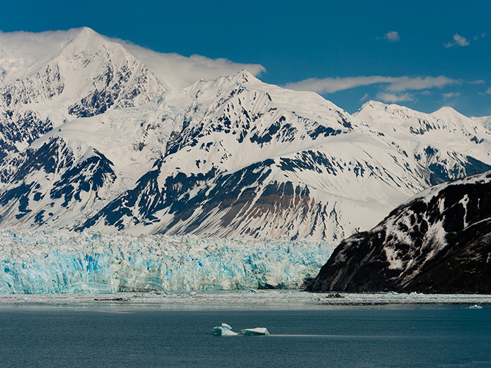 パシフィック・ワールド号は、クルーズ最後のハイライト、アラスカフィヨルドへ。深い森が広がる雄大なトレーシーアームフィヨルド、クルーズ船でしかアクセスできない場所にある北米大陸最大級の幅を持つハバード氷河、大小の氷河が存在するカレッジフィヨルドなど、アラスカ沿岸部の見どころを数日かけてめぐりました。氷河から崩落した青く透き通る氷、切り立った崖、時折姿を現す野生動物など、遊覧中も次々に現れる見どころを楽しみました。