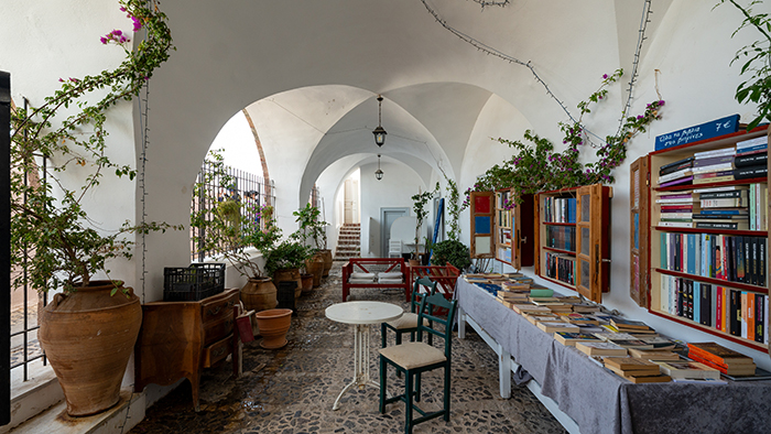 そんな街中でふと足を止めたくなるのが、島の一角に佇む小さな本屋。少し古ぼけた外観ながらも、扉を開けば本の香りと活気に満ちた空間が広がっています。棚には観光ガイドやギリシャ神話の書物だけでなく、サントリーニの地理や歴史、伝説にまつわる本が並び、大型チェーン店にはない温もりを感じさせます。本を手に取り、窓際の小さなベンチに腰掛ければ、時間を忘れてしまうほど心地よいひとときを過ごせるでしょう。
