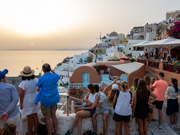 夕暮れ時、イアの崖の上には世界中から訪れた人びとが集まります。誰もが息をのむ美しさで沈みゆく夕日を見つめ、感動を共有するひととき。言葉が違っても、文化が違っても、この瞬間に心をひとつにする。そんな特別な時間が、この島には流れています。