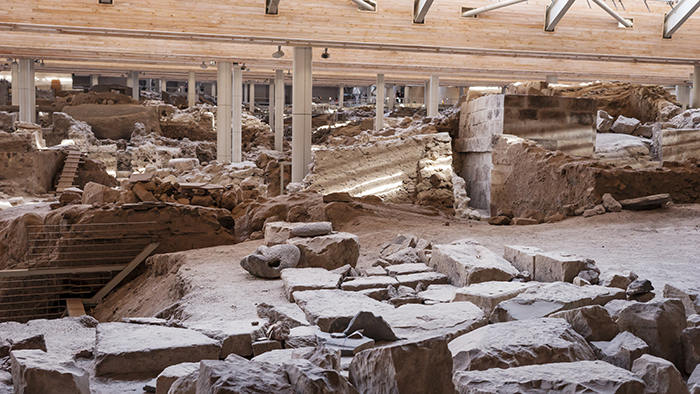 サントリーニ島は、古代文明「アクロティリ遺跡」の痕跡が色濃く残されています。紀元前17世紀に起こった大規模な火山噴火によって埋もれてしまった都市であり、発掘された遺跡からは高度な文明の存在が明らかになりました。壁画には、交易の様子や当時の人びとの暮らしが描かれ、ここがエーゲ海の重要な交易拠点であったことや、どのような暮らしをしていたのかを垣間見ることができます。美しい景観だけでなく、長い歴史と深い文化を感じられるサントリーニ島で、過去の文明の足跡をたどりながら、現代の風景と重ね合わせれば、より豊かな旅の時間を過ごせることでしょう。