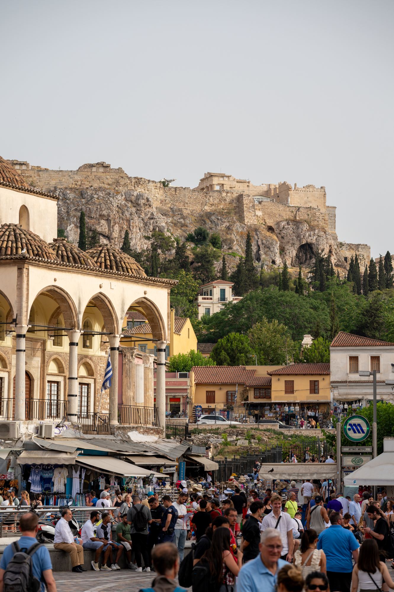 ギリシャ語で「高い町」を意味するアクロポリス。石灰岩の丘にそびえる白亜のパルテノン神殿は、アテネの黄金時代、紀元前438年に守護神アテナを祀るため造られた。46本の石柱で支えられ、完成当時は内部に金色の巨大アテナ像が立っていたという。丘の上にはニケ神殿やエレクティオン神殿などが建ち並び、2,500年前にソクラテスやプラトンが見た景色を、自分も見つめていることにロマンを感じる。