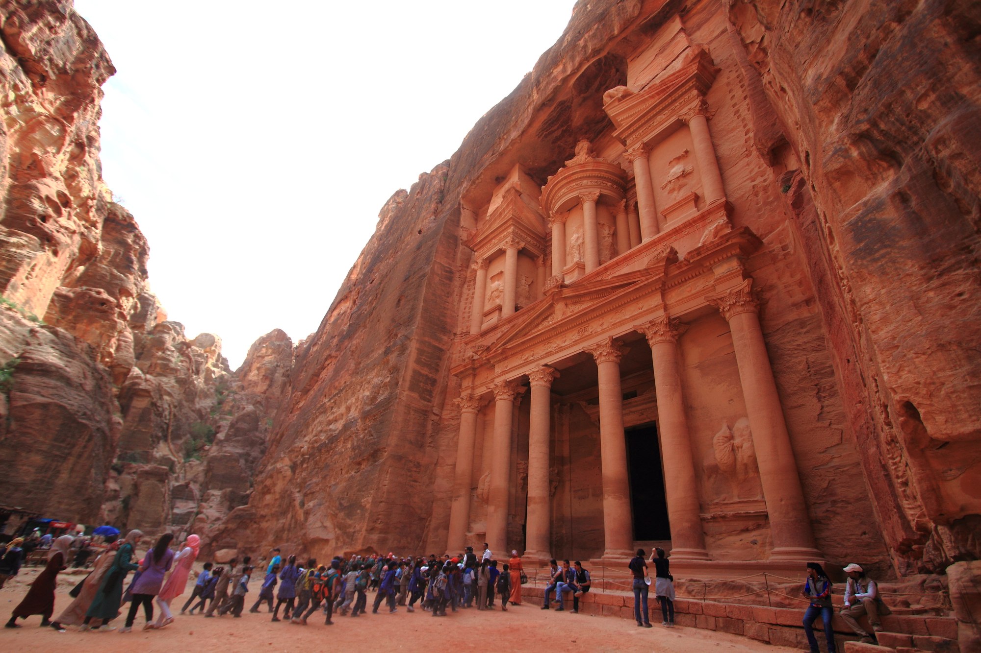 赤土の砂漠の中に岩山や巨石が点在し、夜は満天の星の下でキャンプを楽しめる世界遺産ワディラム。 “月の谷”とも呼ばれるヨルダン最大の涸れ谷(ワディ)で、古代人の壁画なども残る。一帯にはベドウィン(遊牧民)が暮らしラクダがたたずみ、一度訪れると一生忘れられない土地だ。映画『アラビアのロレンス』のロケ地であり、火星のような景色は『スター・ウォーズ』『オデッセイ』などSF映画にも多く登場している。ヨルダンでは他に岩壁を削った古代都市ペトラも訪れたい。ピンク色の岩壁を掘り出して造った神殿の美しさに心を奪われる。