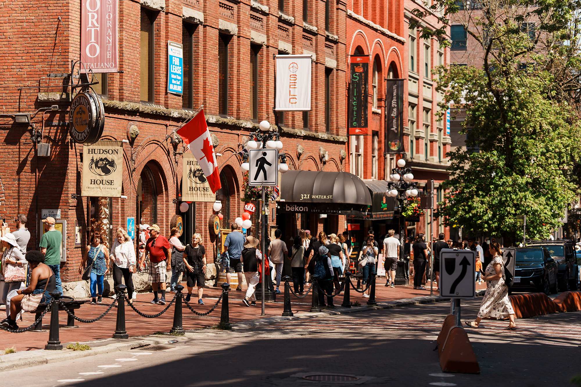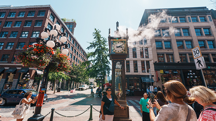 ガスタウンはバンクーバーの歴史がここから始まった「バンクーバー発祥の地」であり、石畳の道路にビクトリア様式の建物が並ぶ美しい歴史地区です。このエリアのシンボルは、世界的にも珍しい「蒸気時計」。毎正時には汽笛のような音とともに蒸気を吹き上げ、古き良き時代のロマンを現代に響かせます。個性的なアートギャラリーをめぐり歩くと、レトロなもうひとつのバンクーバーを感じるひとときを過ごせます。